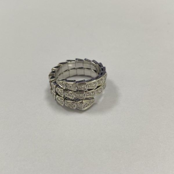 Una exquisita reproducción del icónico diseño Serpenti de Bvlgari, elaborado en oro blanco genuino de 18 caratos con 1,13 quilates de diamantes.